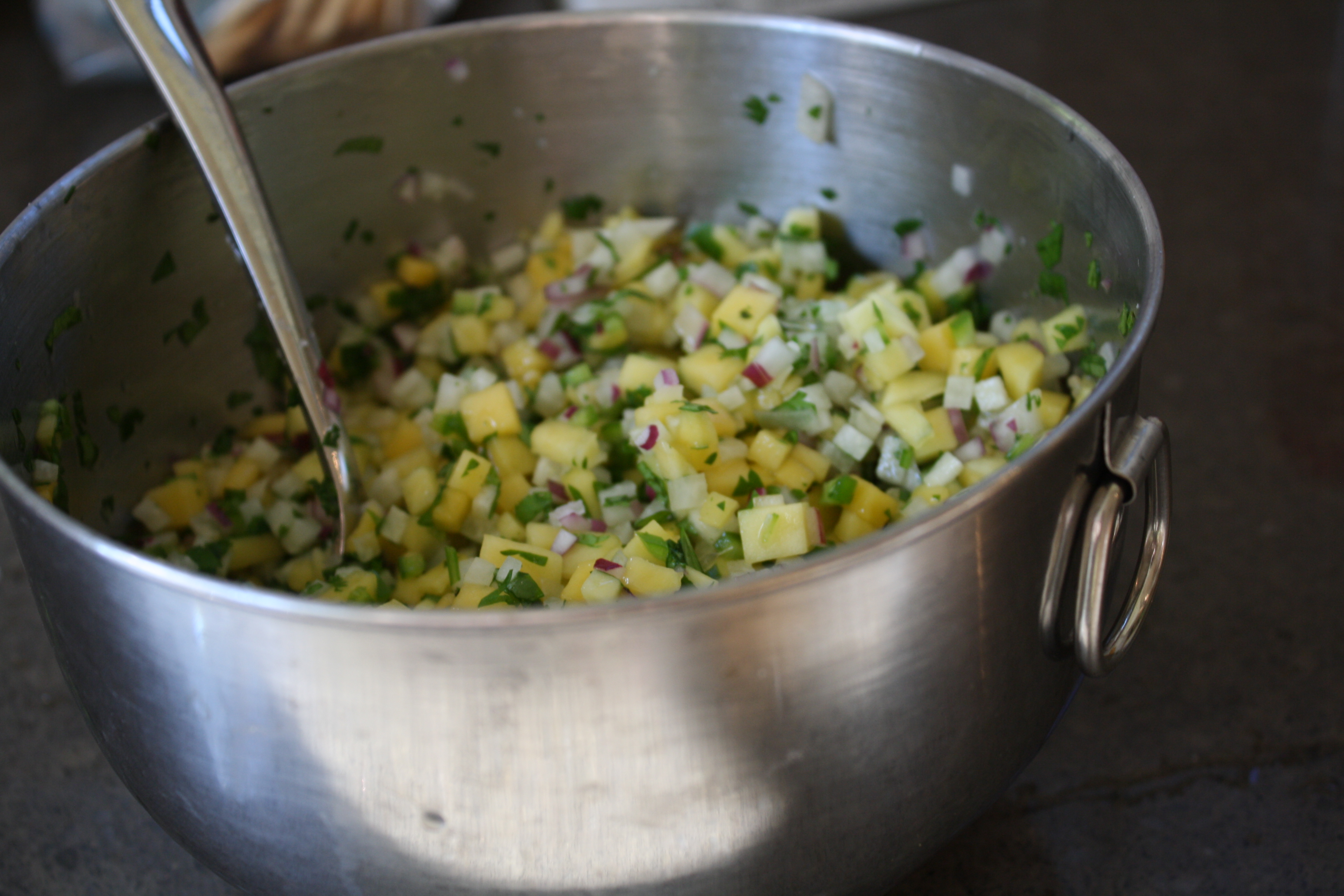 1. Finely chop mango, jicama, jalapeno, and red onion.