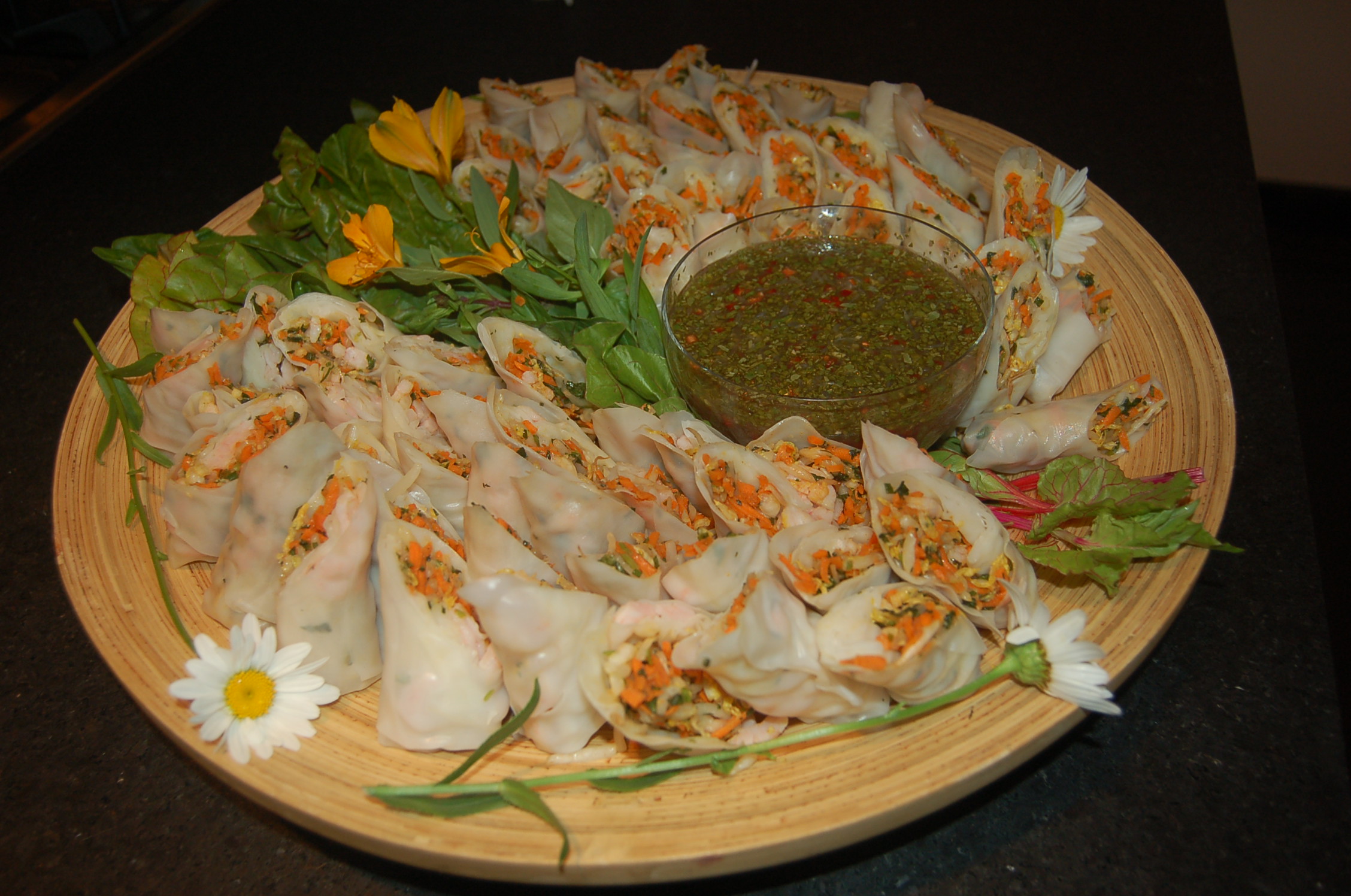 Recipe adapted from “Vegetable Spring Rolls with Thai Herbs” in The Herbal Palate.
