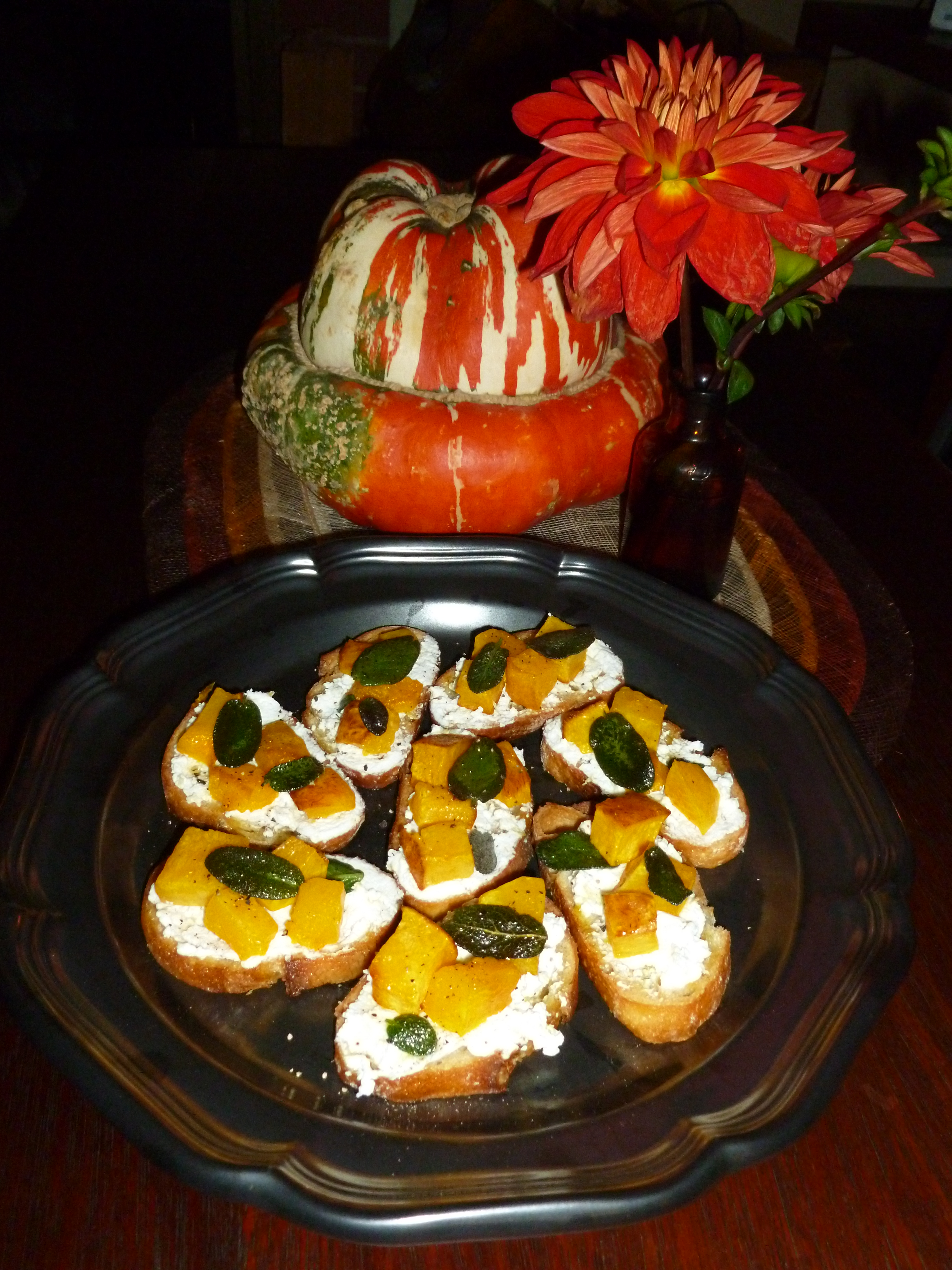 As I was preparing my Fall Feast, I came across this recipe in Bon Appétit magazine. Because I had already planned to roast butternut squash, and I have plenty of fresh sage in my garden, this seemed like the perfect appetizer to start the evening.