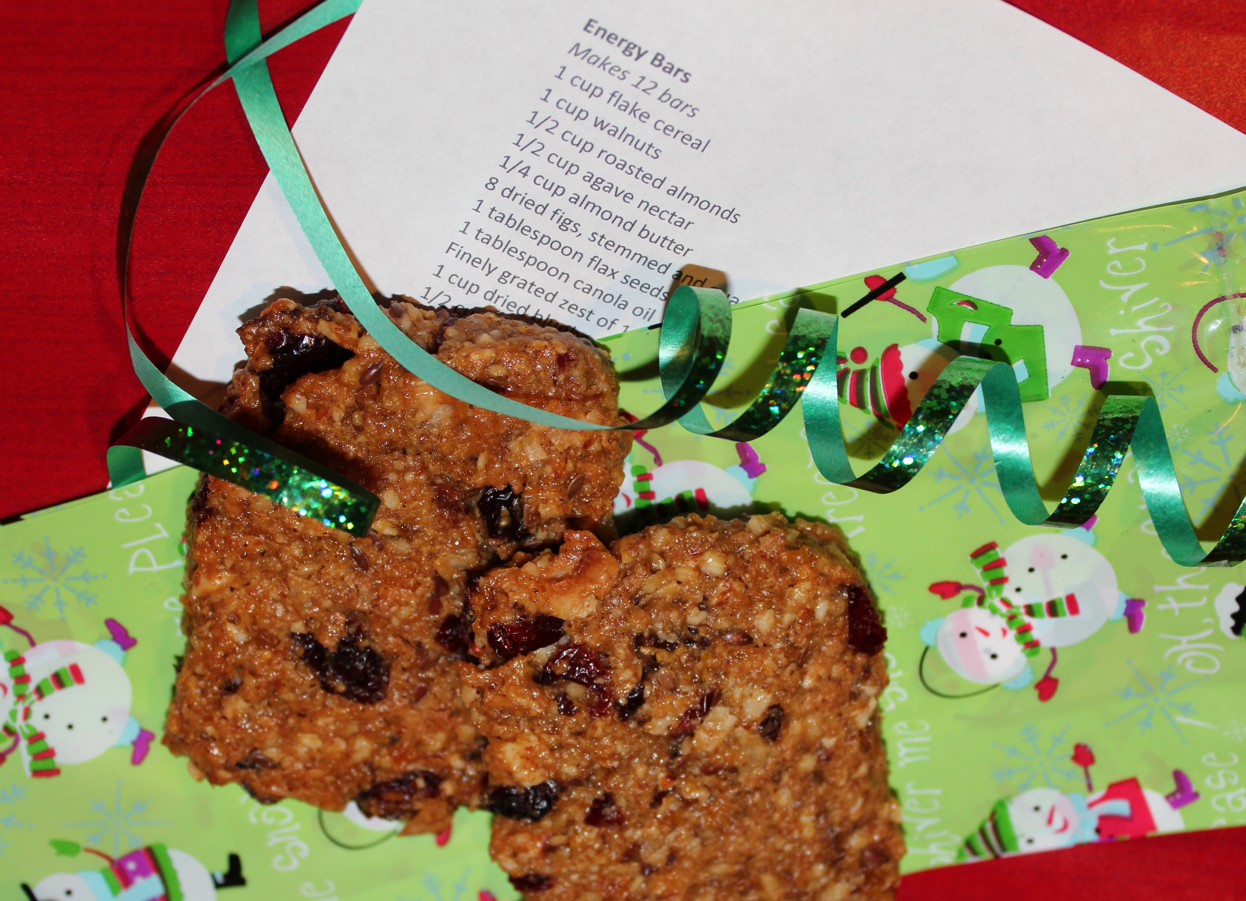 1. If you have active friends who don’t always have time for breakfast, consider making them a batch of Energy Bars. To make it more festive, replace the walnuts with pecans, use cranberries instead of blueberries and add a 1-2 tablespoons of minced crystalized ginger. Wrap them in a gift bag or plastic container, and attach the recipe with a piece of ribbon.