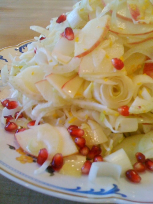I also prepared a Holiday Ladies Luncheon for one of my favorite clients. I served a variety of salads that afternoon, including this Apple Fennel Salad with Endive and Orange-Muscat Vinaigrette, which is a refreshing winter salad.