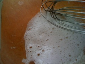 Whip the eggs whites until frothy (see adjacent photo).