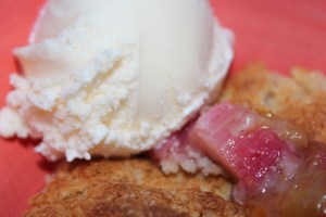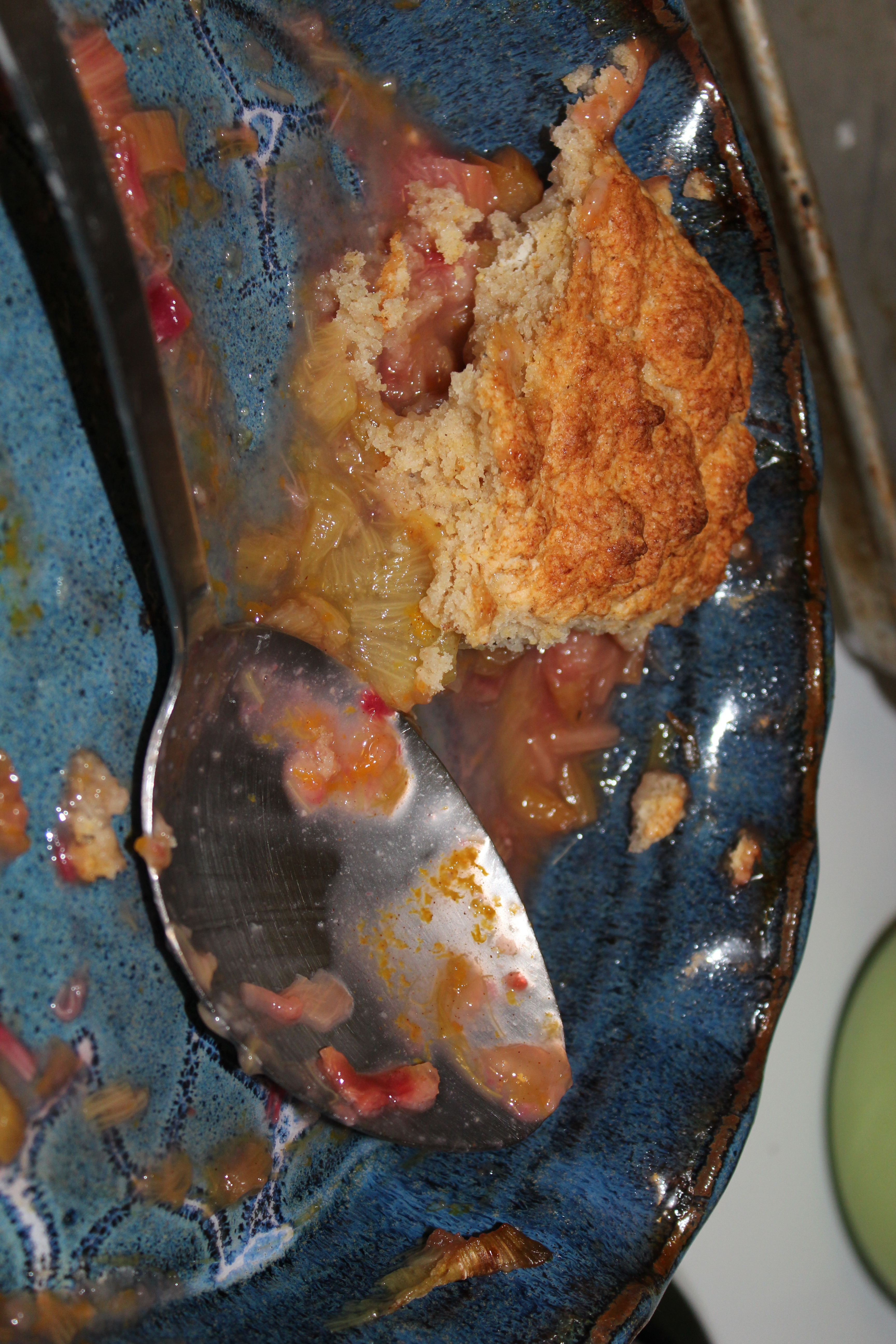When I agreed to host an impromptu backyard barbecue last month, the easiest part of the menu to decide was dessert. I had just received fresh rhubarb in my Full Circle delivery, as well as a bunch from my mom (who had gotten it from her neighbor). My friend Dana, who was attending the dinner, voted for cobbler.
