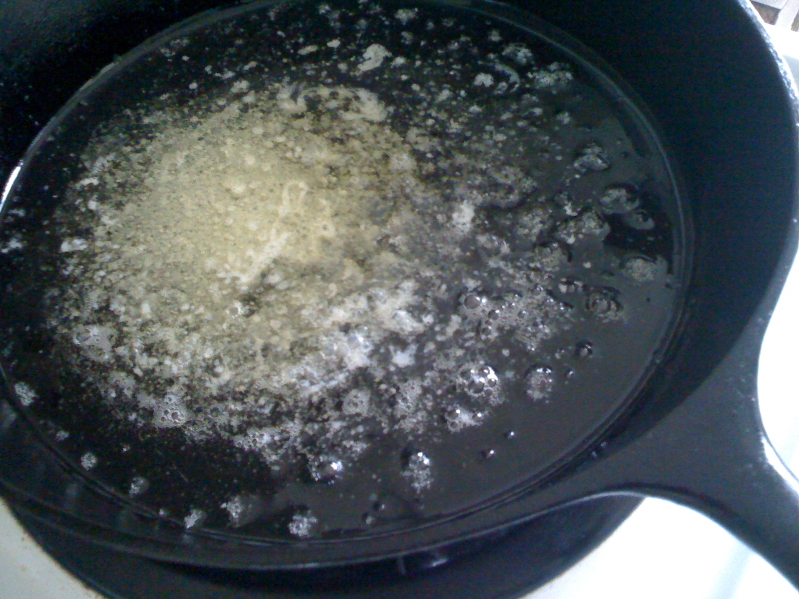 Pour batter into the heated pan with melted butter, and return pan to oven. If you want to add a little flavor and sweetness, sprinkle the batter with a small amount of cinnamon and sugar before baking.
