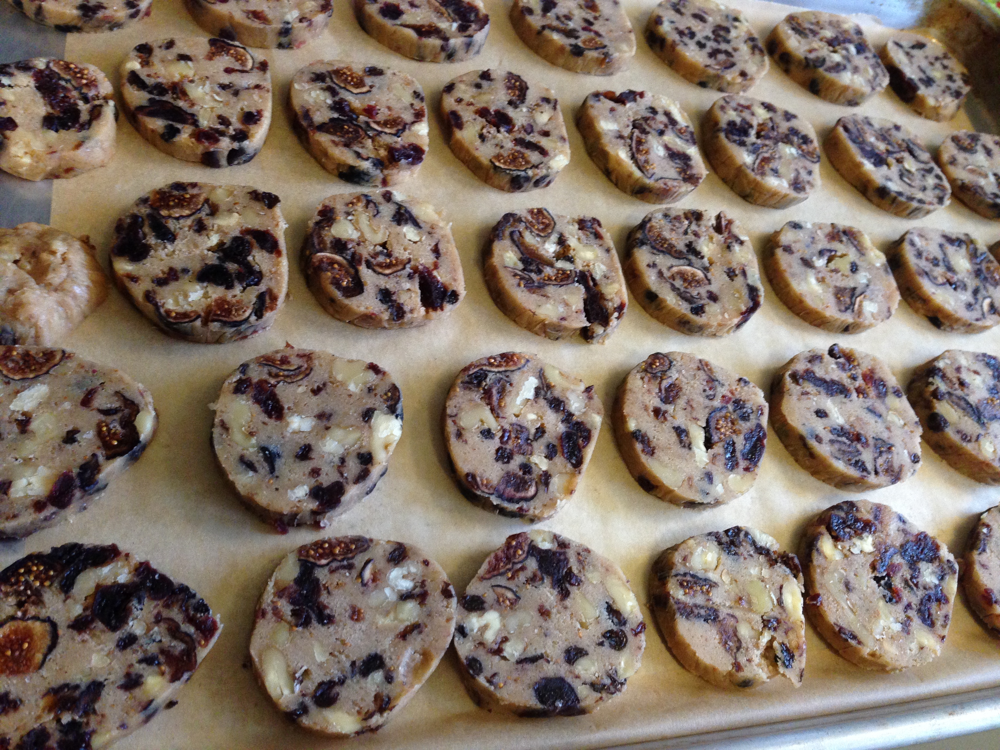 A client introduced me to this recipe last year, and I liked it much more than I expected to. Don’t let the name deceive you: These are not very much like fruitcake (I am not a fan). They are buttery and nutty, and the dried fruits have a hint of cognac flavor.