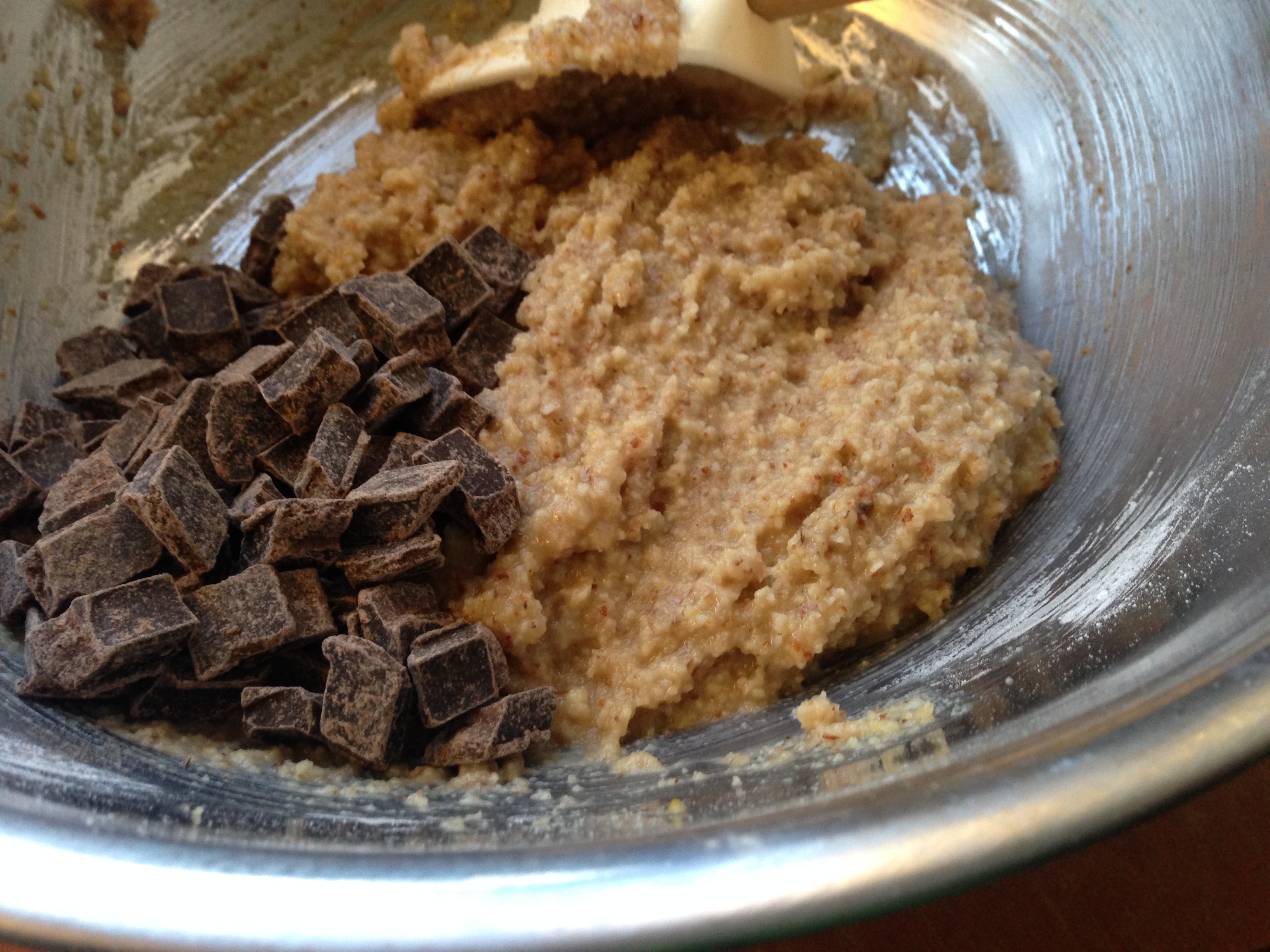 NOTE: The original recipe calls to melt the remaining chocolate and shortening in a double boiler until melted and them drizzle over the baked biscotti. I opted to add the full cup of chips into the batter and forego the drizzle.