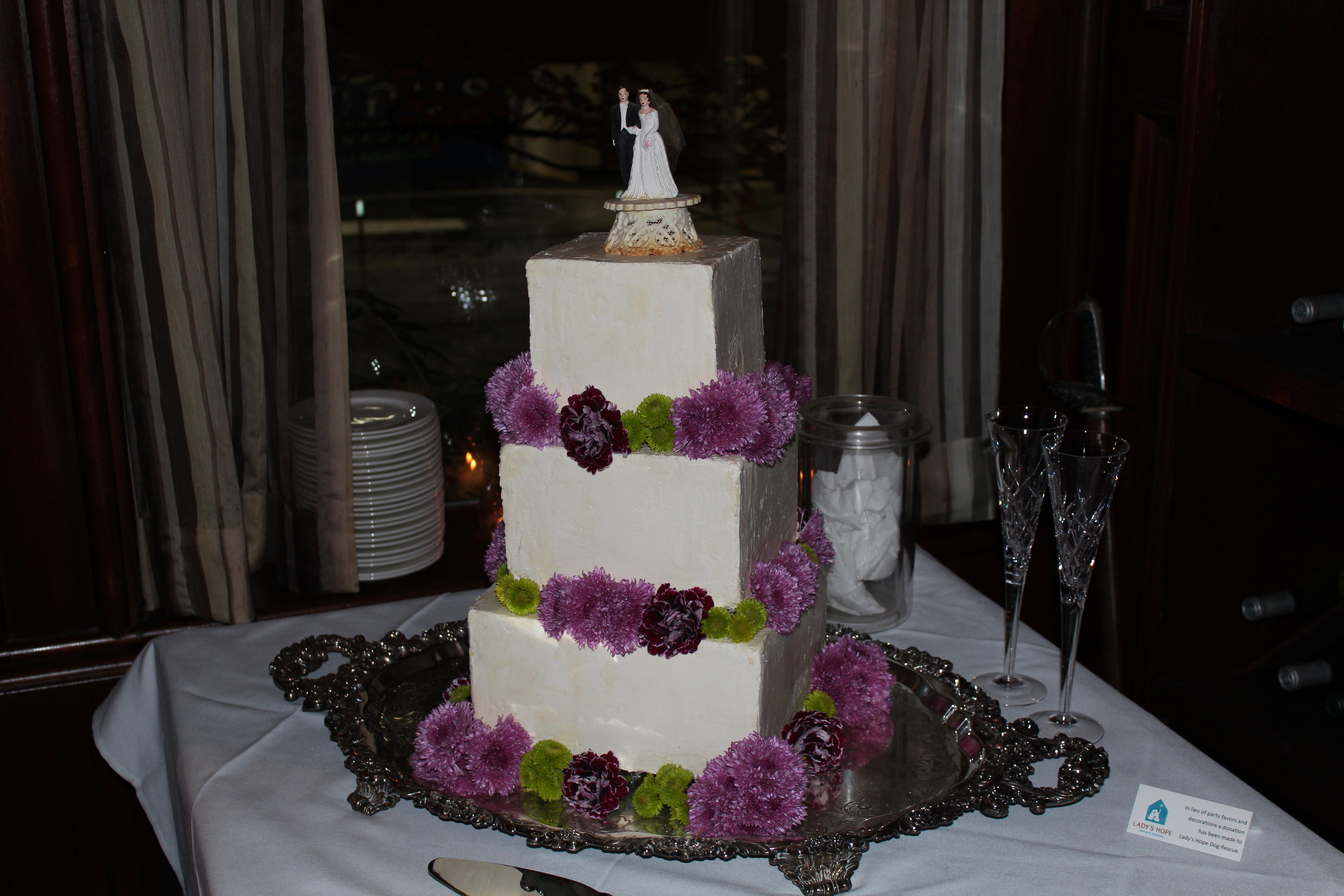 And I made this square, three-tiered cake for Jessica and Simon, whose wedding reception was held at Tulio (after they had a romantic wedding in Hawaii–too bad they did not fly me over to cater the reception there!).