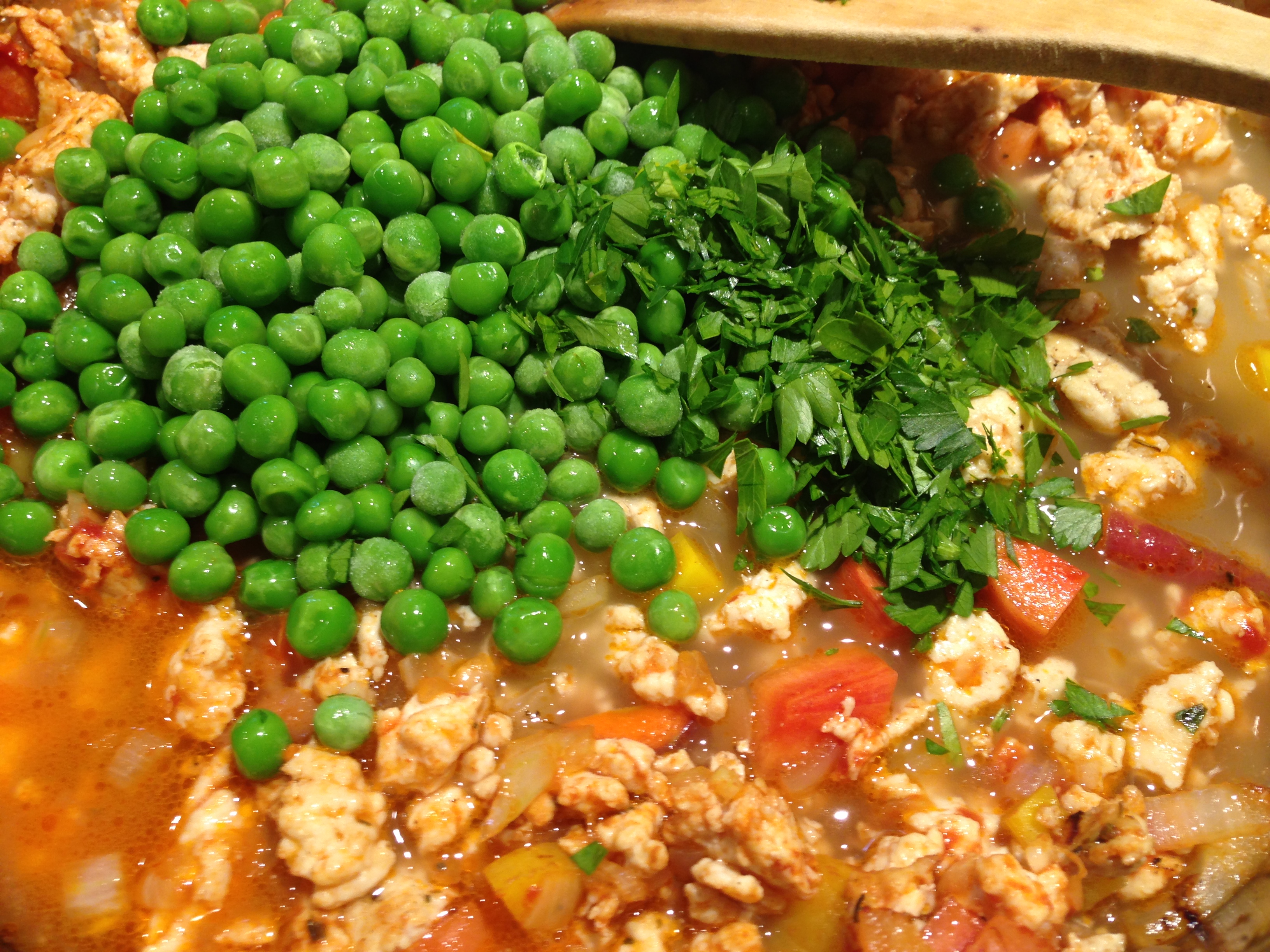 Reduce the heat to medium-low. Pinch ground turkey into 2-inch pieces and place on top of the mixture in the skillet. Cover pan and cook until meat is cooked through, about 10–12 minutes, breaking up meat chunks halfway through the cooking.